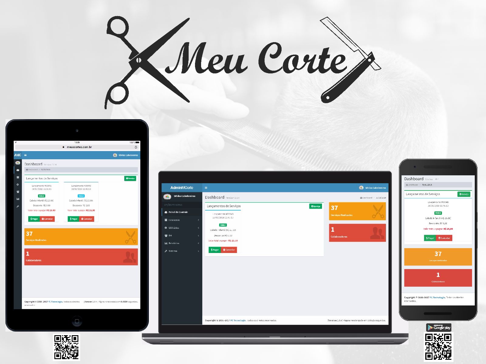 O Sistema Meu Corte foi desenvolvido para Administação total do seu negócio! Cadastro de Clientes, Lançamentos em Comandas, Gerencia de Produtos e Serviços e Controle de Comissões.